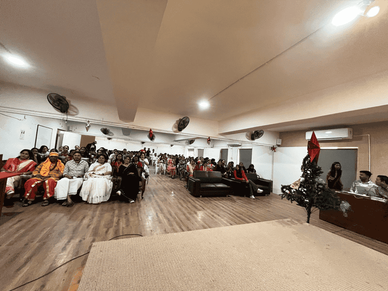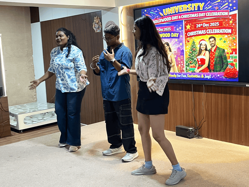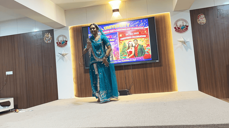 The Christmas Day Celebration 2025 was held on 24 December at the Seminar Hall of Sabarmati University with enthusiastic participation from students, faculty, and staff members. The Seminar Hall was beautifully decorated with Christmas ornaments, lights, and a Christmas tree, creating a festive and cheerful atmosphere.