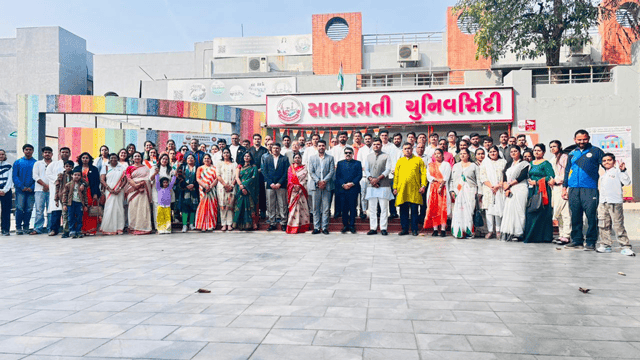 The occasion was further dignified by the presence of the President of Sabarmati University, Shri Sunny Patel, Vice President Dr. Ashish Chaturvedi, Registrar Dr. Jyoti Srivastava, and Dean (Academics) Dr. Parshuram Dhaked.
